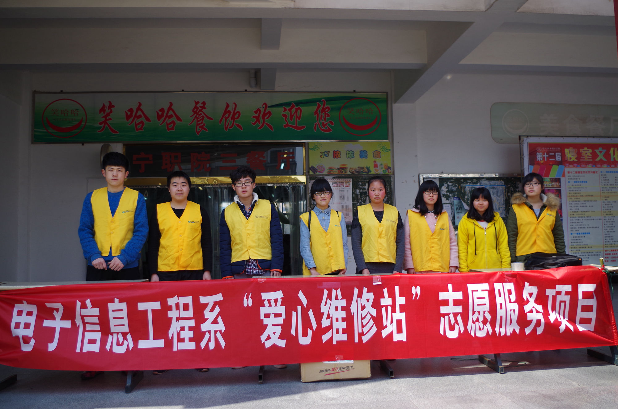 | 2014年3月14日,电子信息工程系学生会志愿者部与我系科学技术协会联合在学院食堂门口举办了“爱心维修站”志愿者服务项目。