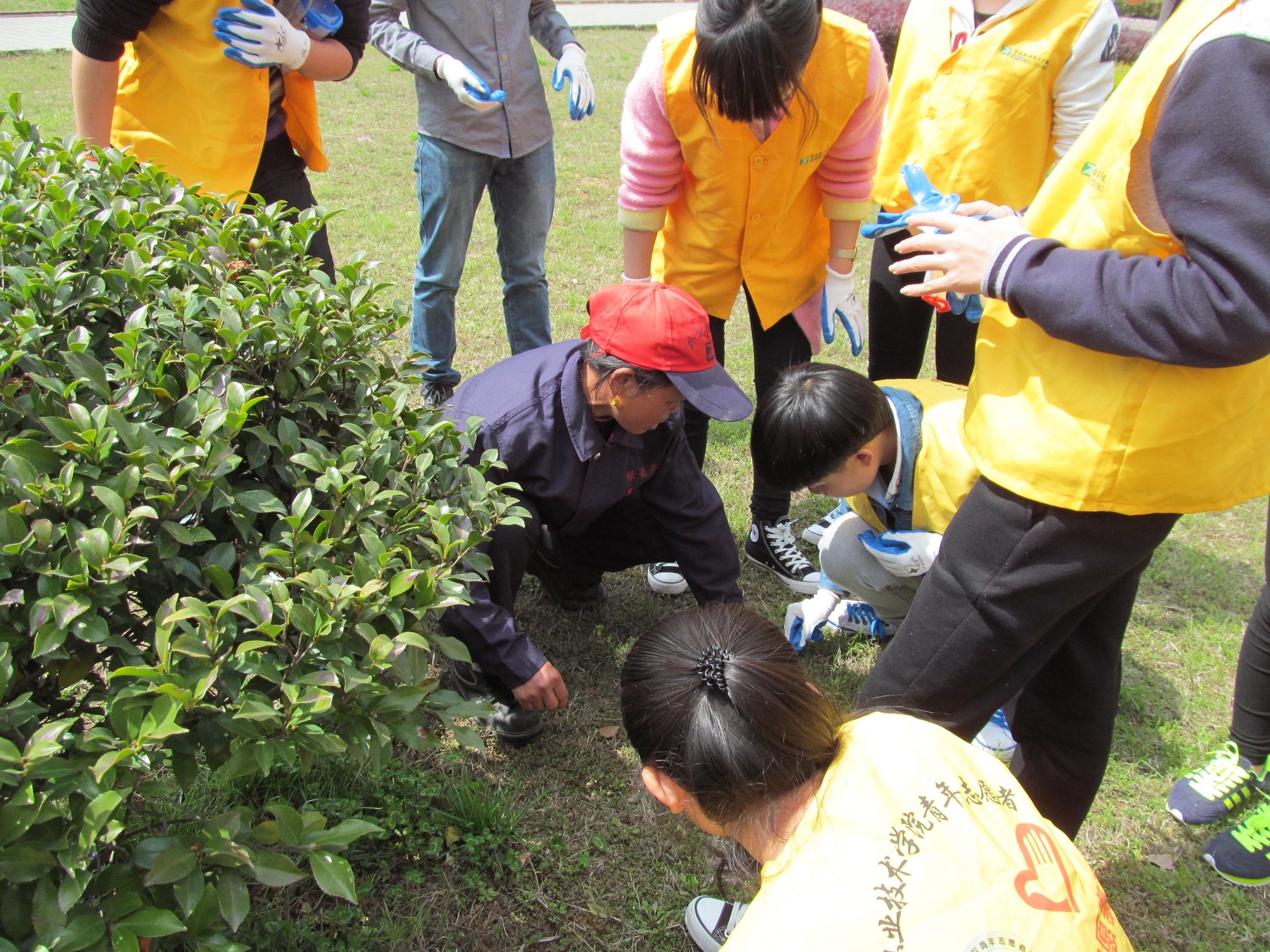 参加此次活动的班级有计算机应用3131、3134、3122、3124、网络3131、应用电子3134,总共27人并分成4组,每组各7人。此次活动的主要负责人为生活部的部长助理宣光锋。 在开始之前,助理宣光锋将志愿者的服装和拔草所需的手套分给每个小组的队长,再由队长分发给自己小组的成员。随后各个小组则随着学院内的保洁人员前往所要除草的地方,并交代他们该如何拔草及拔草时所需注意的地方,告诉同学们哪些草该拔哪些不能拔。