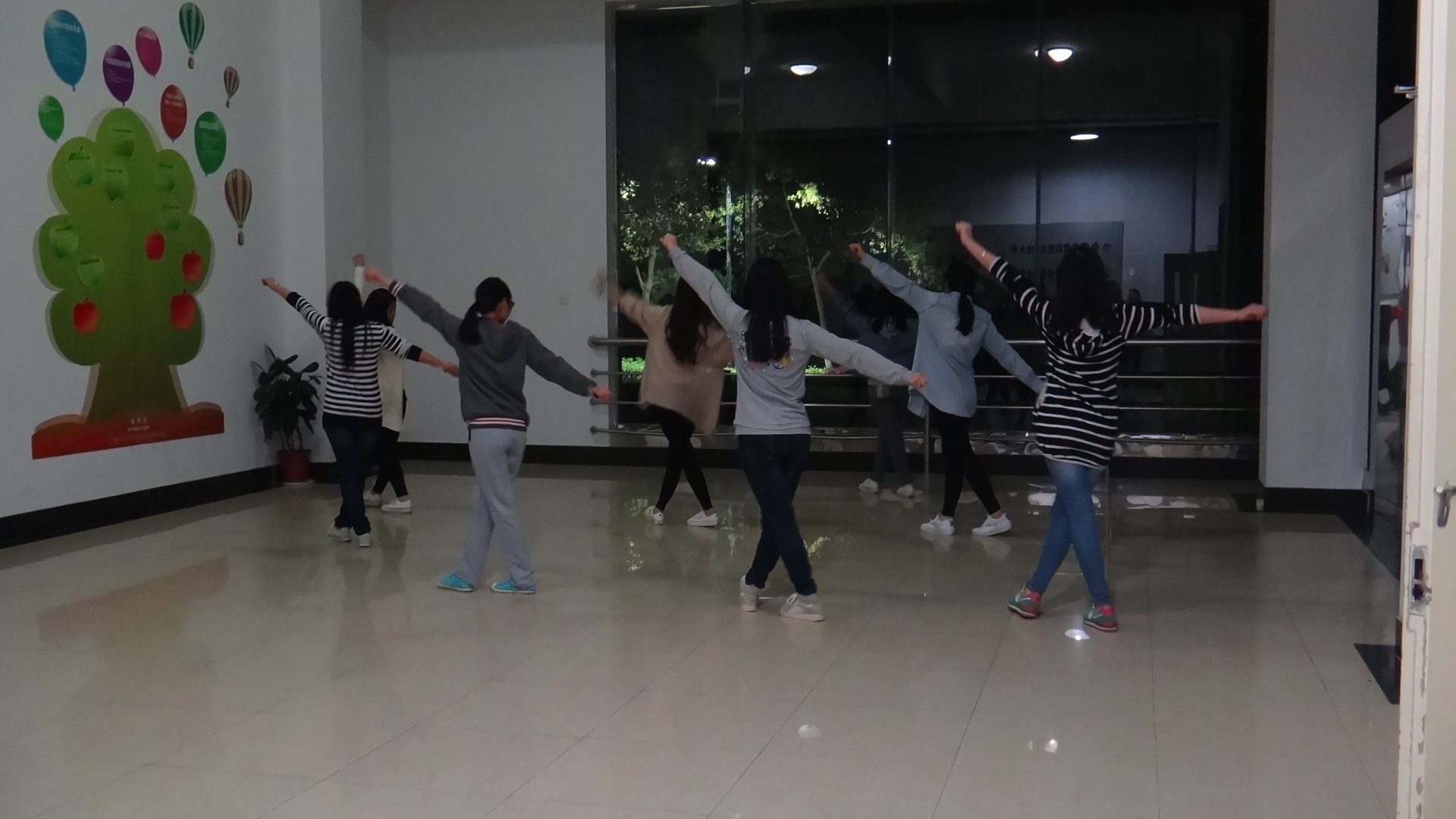 | 2014年3月31日,为了能够很好的推动早锻炼,并结合开展班集体特色项目建设,同时提高同学们的身体素质,凝聚班集体,充实大学生活,展现当代大学生的精神风貌。电子信息工程系计算机应用技术3134班班级成员在敬业楼一楼排练班级特色项目“健美操”。