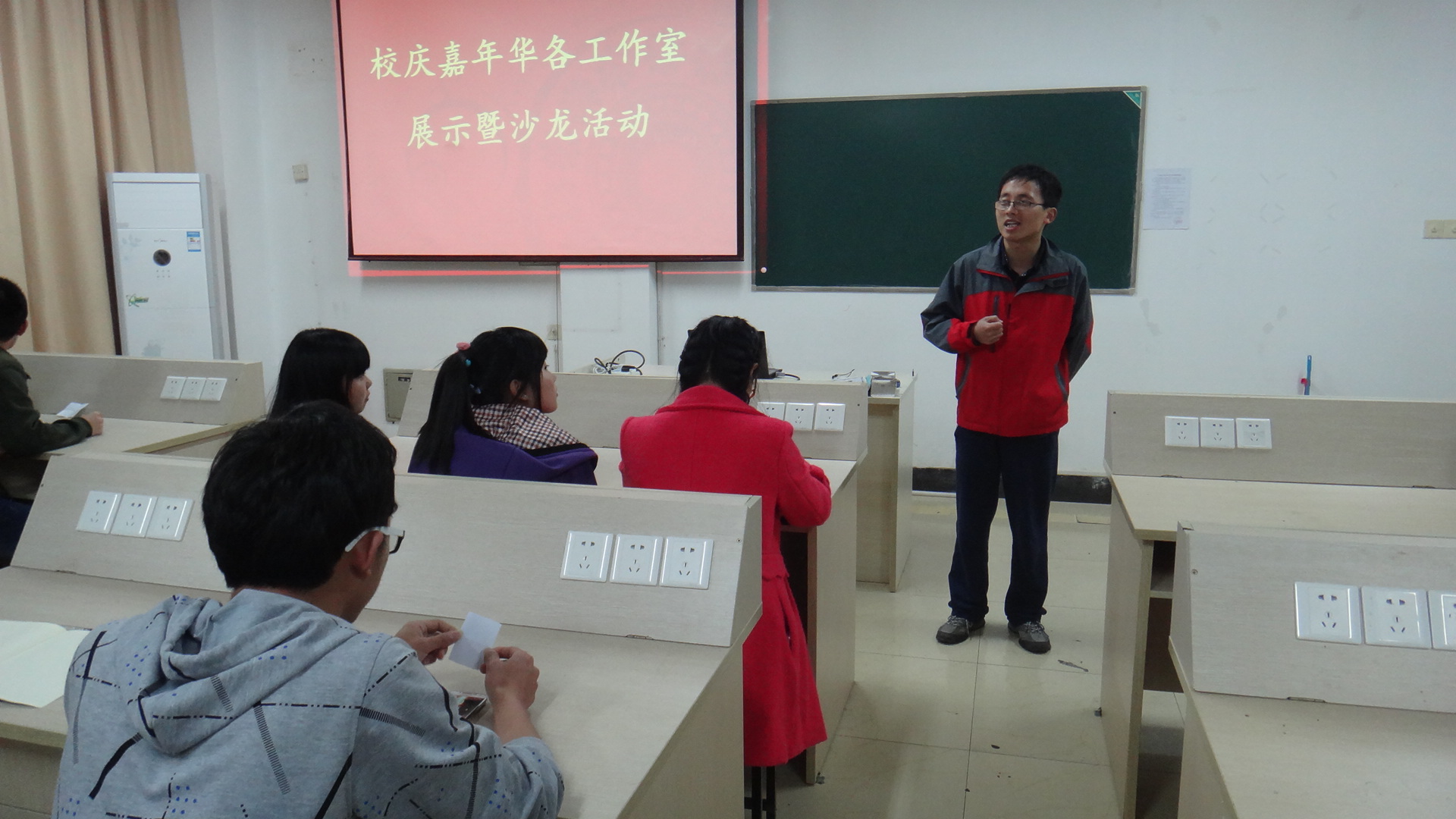 2014年4月16日,电子信息工程系校庆嘉年华各工作室展示暨沙龙活动报告会在敬业楼228教室召开。本次报告会由我系辅导员胡国伟老师主持。 此次活动的目的是为检查迎接校庆嘉年华活动中个工作室的作品展示准备工作,提高各工作室成员之间的合作学习能力和动手实践能力,检查各个工作室各个任务的完成情况。