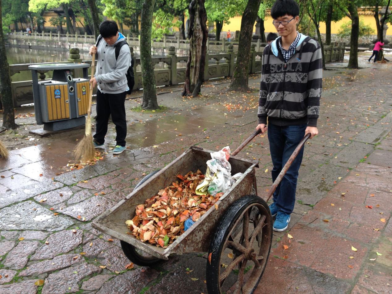 2014年4月19日上午9点,电子信息工程系义工大队组织10名志愿者前往阿育王寺进行清洁整顿寺内环境卫生志愿活动。