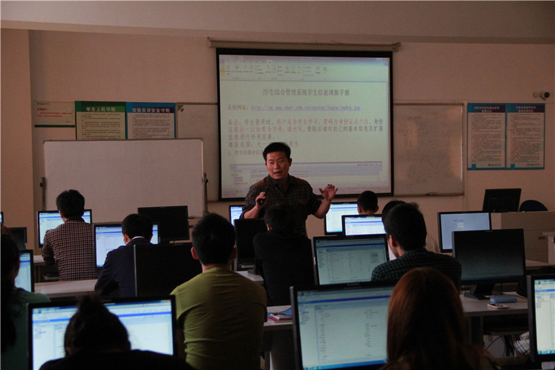 2014年4月29日,为更好的进行学生电子信息完善工作,电子信息工程系组织各班的班长团支书在敬业楼426教室进行学生信息填补培训。 中午12点30分,各班级班长团支书陆续到达并进行签到。随后,负责本次培训的陈之顺老师开始介绍本次培训的目的和指导同学们进行操作。首先,同学们进入系统网页,然后,输入各自的用户名和密码,登陆后对自己的基本信息及扩展信息进行补充完善。