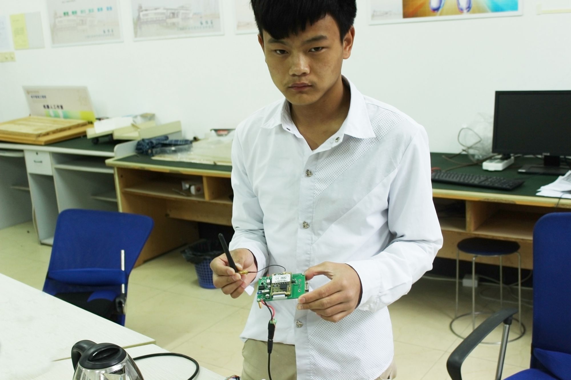 图为:褚江南同学向记者展示GSM短信通知功能模块 在采访期间,褚江南同学还向记者介绍了产品的新功能,通过GSM模块,可以向用户发送短信,并告知是什么原因导致跳闸。他说:“我们这款产品主要是为寝室研制的,我系对寝室用电安全一直比较关注,系里对寝室楼的检查尤为严格,这款大功率限制器可以很好的杜绝一些偷用大功率电器的行为发生,并能及时通知管理员那个寝室在使用大功率,为寝室用电安全更添一个保障。 电子信息工程系 李涛/文、摄 |