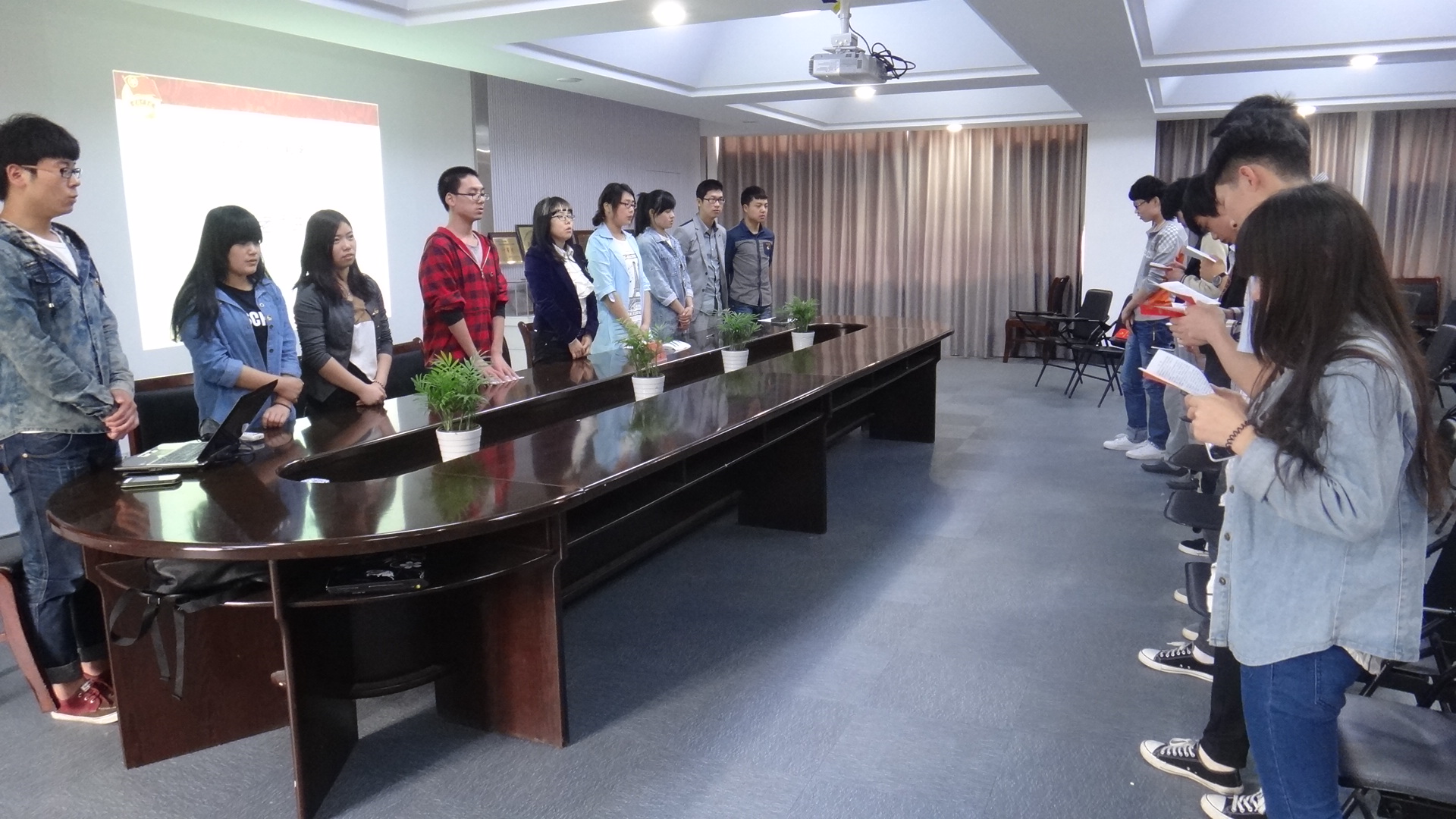 | 2014年5月9日下午1点,电子信息工程系新团员入团仪式在敬业楼党员之家举行。出席此次入团仪式的有我系团委书记陈宇老师,7名团学干部代表和8名新团员。