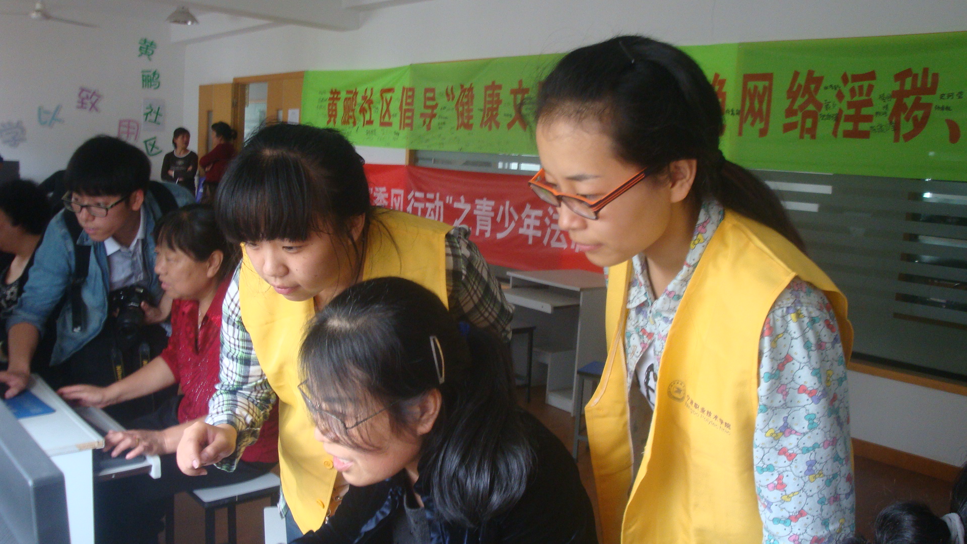 下午1点20分,志愿者们在志愿者部部长夏威栋的组织下,全体志愿者乘车到达黄鹂社区。社区负责人告诉志愿者,本次志愿者活动主要目的是帮助老人们学会简单的上网,浏览新闻,或是关注自己曾经从事领域的最新进展,同时也可以教老人学会使用聊天工具。