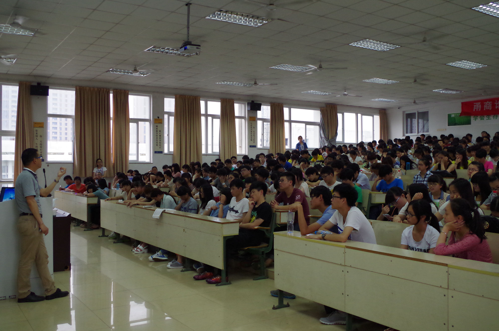 此后,胡克满老师问在场的同学“你会给那些每天忙碌却不开心的同学什么样的建议?”有同学发言说:“我们要学会舍得!”。然后老师就与同学深入的探讨,如何在大学里学会取舍,如何规划好大学的每一天,如何过一个既轻松又充实的大学生活等问题。 讲座过程中,胡克满老师用幽默诙谐的语言,一个又一个小故事为大家讲解大学生活该怎么管理,用一个两全其美的方法,让大学生活过得更加美好。