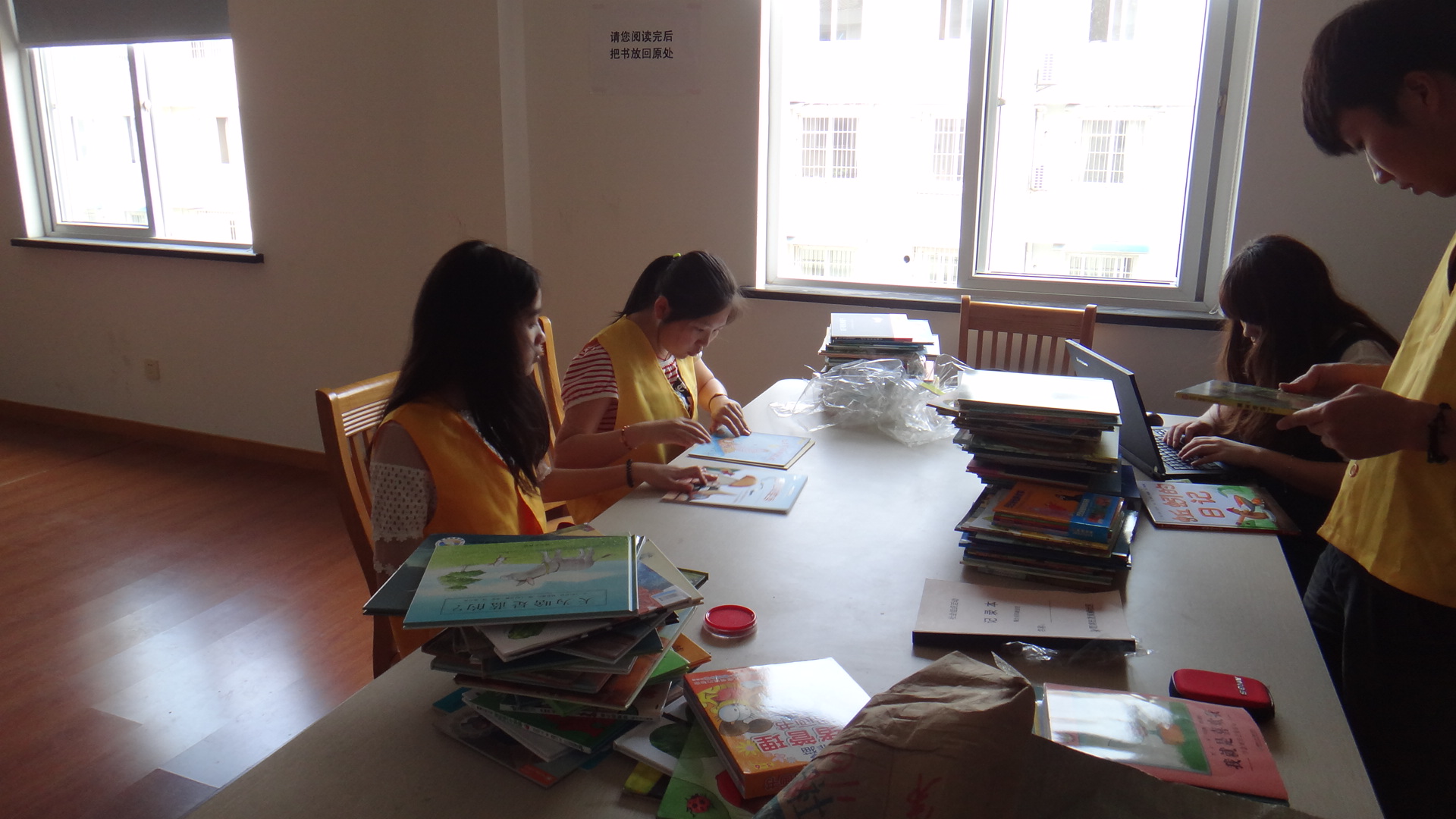 志愿者们在社区管理者的帮助下,来到社区办图书馆。首先,将图书馆的书整理出来,一本本按照顺序排好。接着将每一本图书盖上社区办图书馆所属印章,将其整理好。最后,由志愿者们将所整理的图书,以EXCEL的形式录入到电脑中(EXCEL,主要功能是进行各种数据的处理、统计分析和辅助决策操作,广泛地应用于管理、统计财经、金融等众多领域),使社区办的区民今后查找图书可以根据电子系统查书,而不用在硕大的图书馆一本一本的找。此外,电子图书也方便社区管理者更加快捷的管理图书。