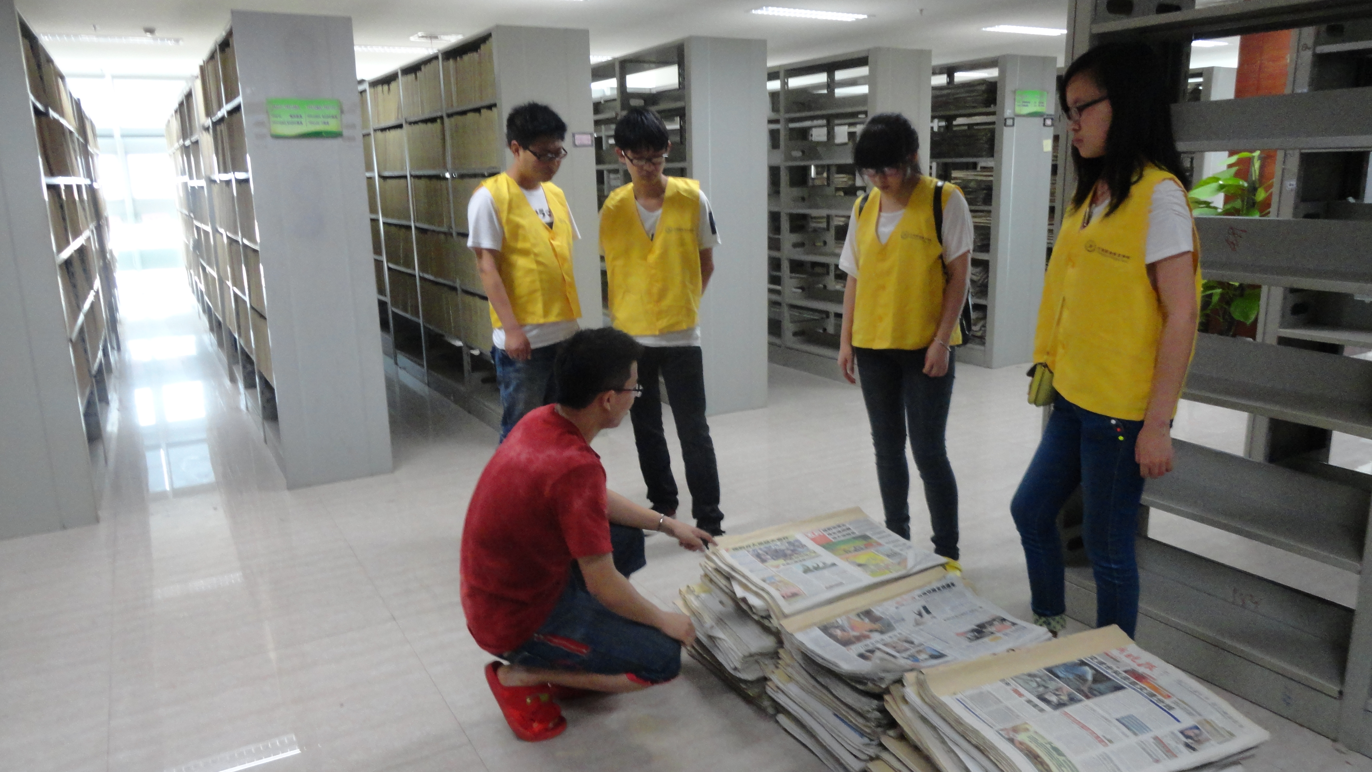 2014年6月10日,电子信息工程系四名志愿者前往图书馆参加图书馆的志愿服务活动。中午1点30分,志愿活动正式开始,志愿者们首先抵达了图书馆,并在图书馆管理员的带领下很快熟悉了工作内容。志愿者们主要进行的是对报纸的分类,排序和上架摆放等。 ![]() 志愿者们在图书馆负责人的帮助下,每位志愿者慢慢在整理过程中找到技巧,按照对应的报纸名称,出版时间依次归类进行排列,每个人都神情专注,干的热火朝天,不亦乐乎。报纸上架是一个体力活,劳累且繁琐,但在大家的积极配合下,一切都进行地井然有序。 管理员看见志愿者们积极认真地工作,颇为感动,都很佩服大家的勇气和耐心,他在表示感谢的同时,殷切地说道:“你们今天真的帮了我们大忙,真希望有更多的志愿者能像你们一样,服务他人,奉献自我。”