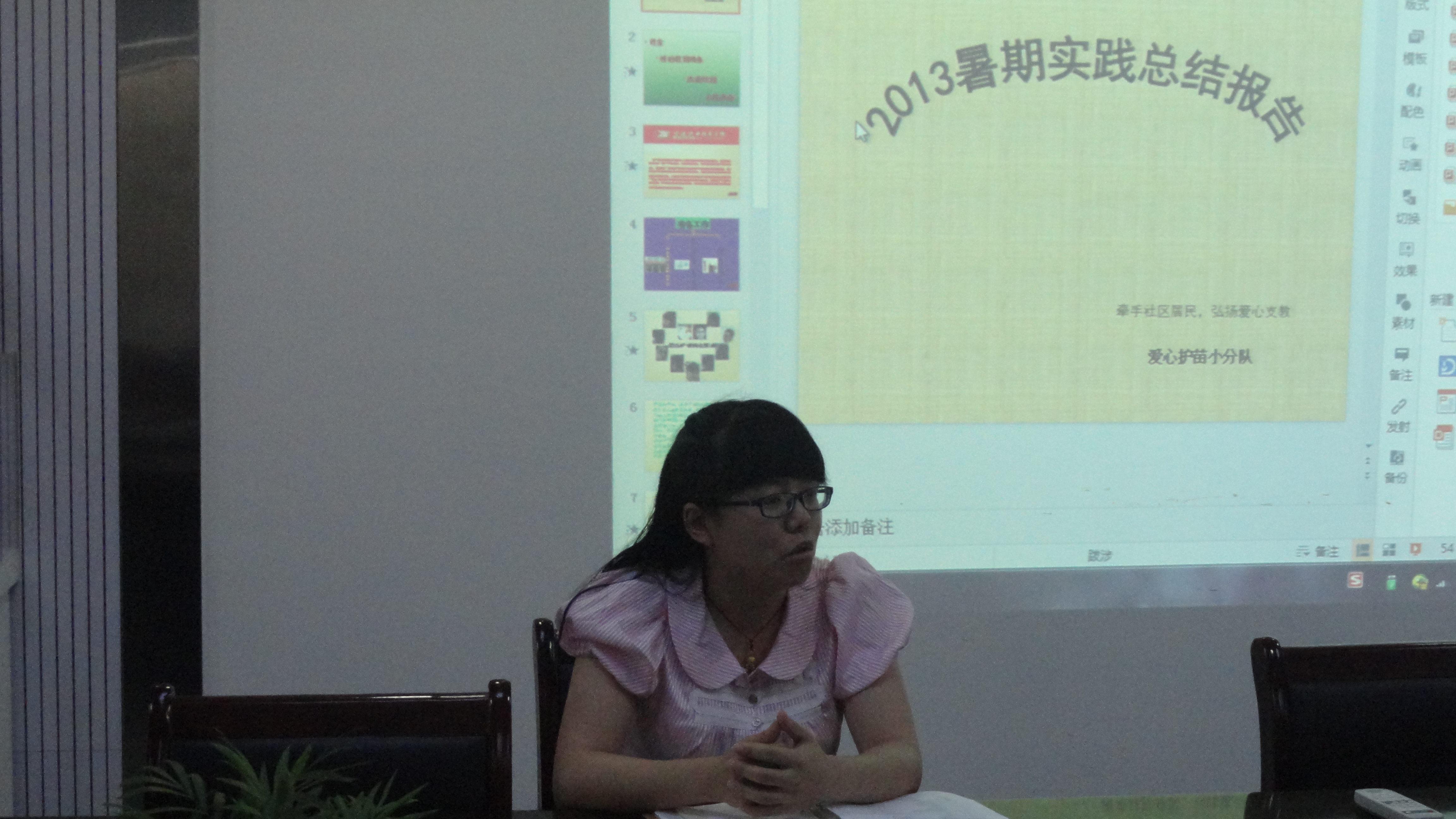 随后,志愿者部部长夏威栋和在座各位分享了去年暑期支教的点点滴滴,也简单讲解了今年活动的具体安排。会议最后,陈宇老师再次强调了安全问题,对在座同学们说:“你们的安全问题还是最牵挂的问题,也是学校最重视的问题。在支教的空余时间不要去危险的问题,我们老师每天也会来探望你们。”