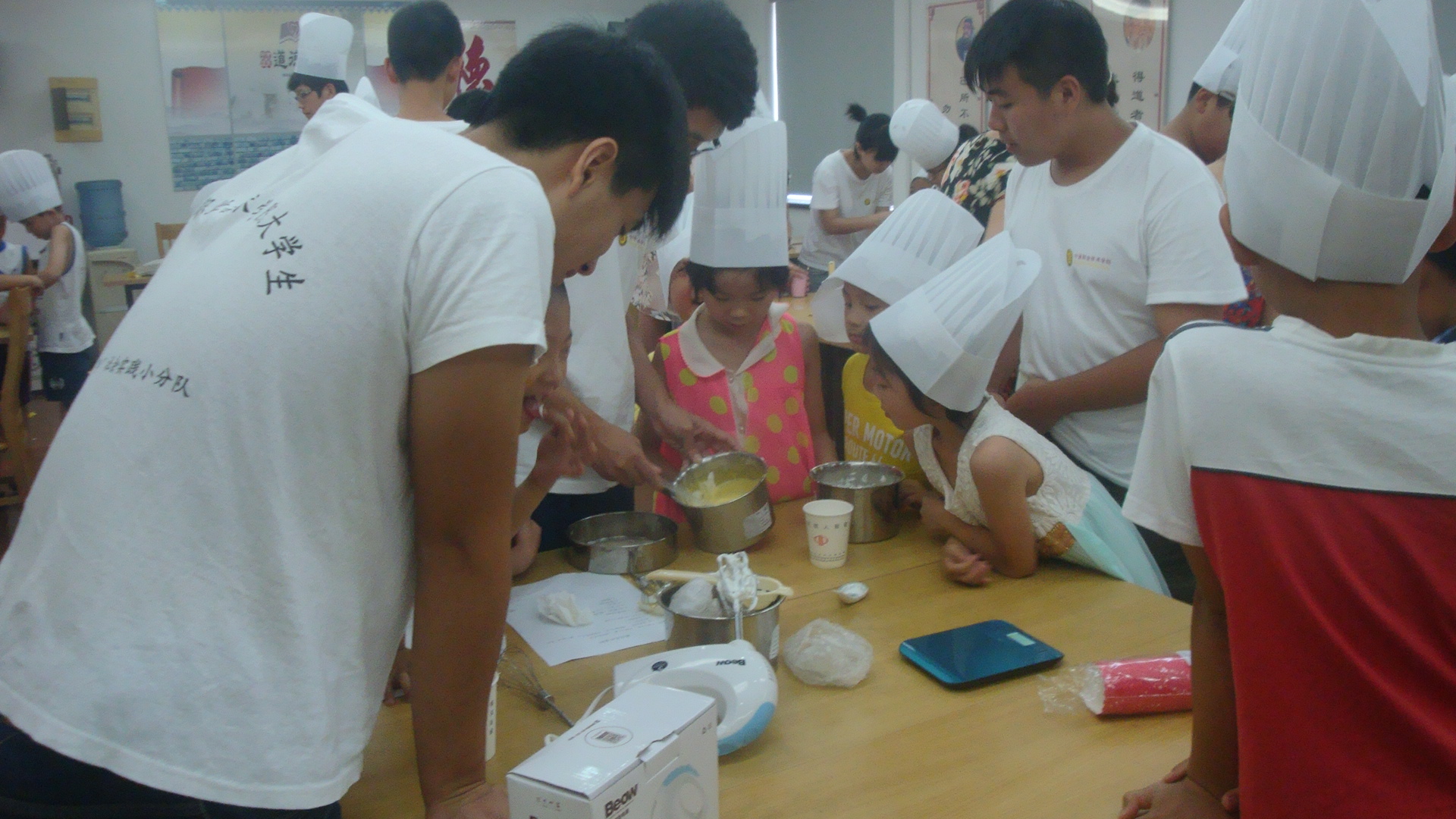 | 为增添孩子们的暑期生活,培养孩子们多种技能,从而提升幼儿思维发展。2014年7月23日,电子信息工程系暑期支教小分队黄鹂社区开展了“巧心巧手,烘培蛋糕”的制作纸杯蛋糕的活动。我系10名大学生志愿者和30余名小朋友参与了此次活动。本次活动邀请了黄鹂社区老师指导孩子们制作蛋糕。