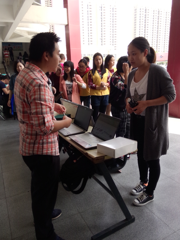 活动期间,志愿者们以饱满的精神宣传爱心维修站。此间,吸引不少同学前来咨询,也有同学将自己的电脑、手机带来维修,志愿者们都耐心的为其讲解、维修。并且给每一个经过的同学分发名片。整个活动过程中志愿者们秩序井然,相互配合。