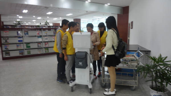 为营造良好的学习环境,更好的服务他人,践行义工大队服务精神。2014年11月17日下午1点30分,我院义工大队成员们在学校图书馆进行书籍整理活动。