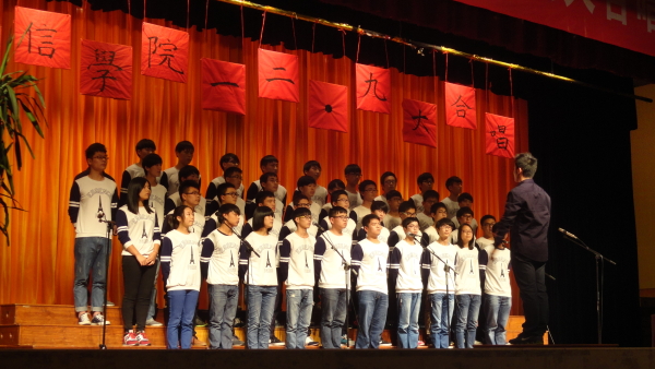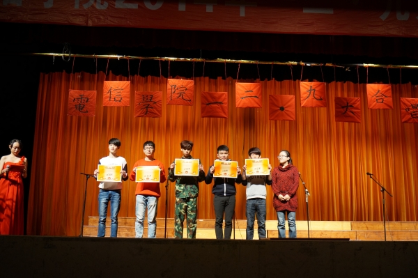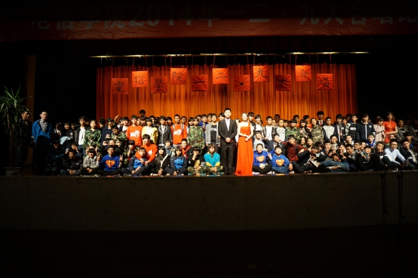 为增加旨在纪念1935年12月9日的那段历史,歌颂祖国建国六十多年以来的巨变,增强广大学生的集体荣誉感和社会责任感,同时更好的展现电信学院学生“自信、青春、爱国”的精神风貌。2014年11月18日晚上6:00点,电信学院于李惠利大剧院举办一二·九大合唱。本次活动由电信学院团委书记陈宇、辅导员刘利峰、专业主任孟德欣三位老师担任主评委。