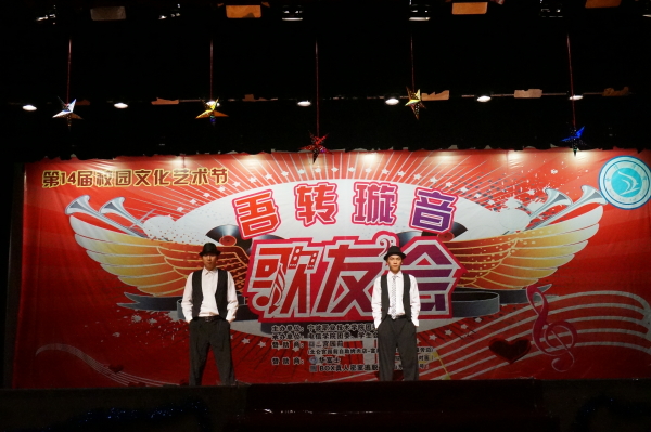 一段十位参赛选手自我介绍的VCR拉开了本次吾转璇音歌友会决赛的序幕。晚会的首项节目是由学院的“舞维空间”社带来的双人街舞表演。台下的同学们热情高涨,为台上的每一位选手加油鼓劲,呐喊助威。《新不了情》、《爱不爱我》、《想你的夜》、《你怎么舍得我难过》等一首首情歌,向同学们呈现了现代爱情的酸甜苦辣。第一轮自选歌曲比赛中,5名选手从预赛中脱颖而出的选手用他们或深情,或沙哑的嗓音诉说着他们对音乐的追求。 比赛途中穿插的现场抽奖、“萝卜蹲”游戏、以及周一洲学长带来的精彩魔术表演更是让观众们一起参与到本次晚会之中,舞台两边不断滚动的微博墙更是为选手、为幕后工作者送上美好的祝福。