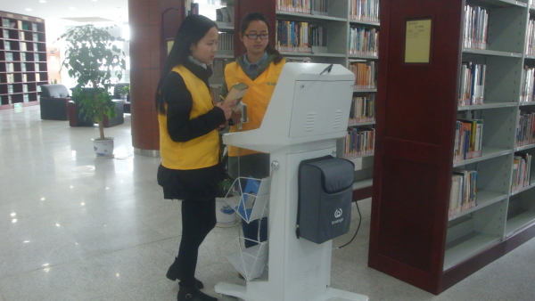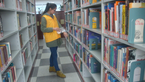 本次志愿活动共有8人参与,志愿者们先抵达图书馆四楼外文图书馆,并在图书管理员的带领下很快熟悉了阅读者管理和书籍归位两方面的工作内容。志愿者们在图书馆整理图书,规范读者秩序。为给阅读者留出更多的阅读空间,志愿者将占座的书籍整理好放置桌子中间;同时为让图书能够无限的传阅借读,志愿者们借助电子扫描仪及电脑设备及时将书籍上架归位,并把下架的书整理好送到二楼收纳处。在短短的两个半小时活动中,志愿者们都坚守着自己的志愿岗位,在浓浓的书香中,传递着志愿者的服务精神。