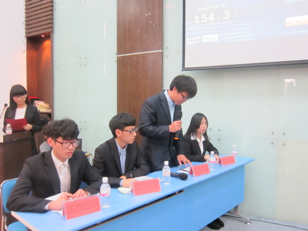 2015年5月14日12点30分,宁波职业技术学院公共教学部思政理论教研室主办,校学生会学习部承办的第四届“明德杯”大学生辩论赛总决赛在明德楼105教室隆重拉开帷幕。思政教研室周碧蓉老师,张国艳老师,吴艳冬老师以及第三届宁德杯辩论赛风采选手林建豪担任此次评委。