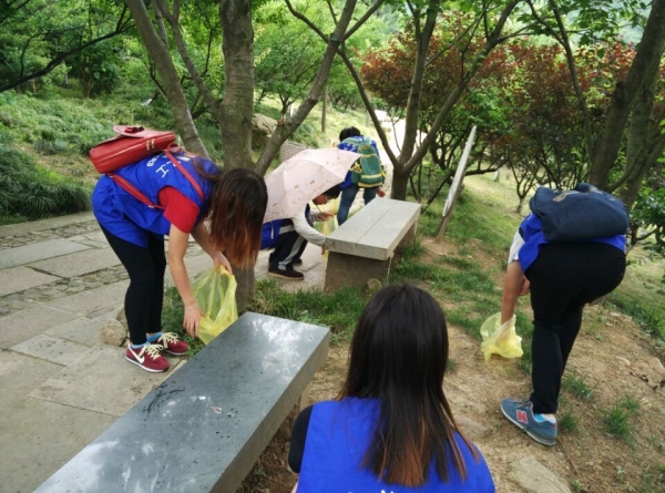 环保之行,始于足下。2015年5月23日下午12点30分,电信学院义工大队在负责人朱宏菲的带领下开展了主题为“美丽北仑,人人有责”的九峰山捡垃圾环保公益活动。本次活动的主要内容是捡景区路上的垃圾。
