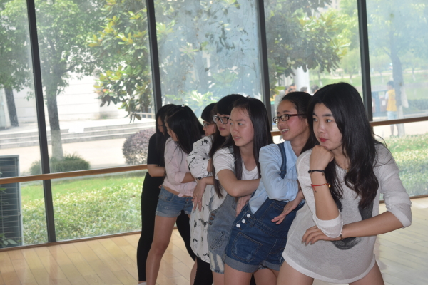 | 她们是一群没有专业功底的非舞蹈系学生,却对舞蹈有无限热爱的学生。2015年5月29日中午12点30分。电信学院新闻小组来到顾国华体育馆一楼形体房对电信学院舞蹈队进行了一次专访。当记者来到形体房时,舞队正紧张的在为“迎新晚会”做准备。据了解,舞队于2014年11月成立。当舞蹈队成员发现记者时,前文娱部部长兼舞队队长周琛佳热情的接待了记者。