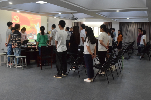 大会在庄严的国歌后开始,经过前期的推优、面试、考核,支部决定发展积极分子魏利燕、庄莎莎、朱伟靖三名同志为中共预备党员,会上三名通知宣读了自己的入党志愿书,支部党员进一步了解了三名积极分子为了加入共产党,成为一名优秀的党员所做的努力,经过大会投票表决,支部正式党员25人,实到20人,经投票表决,20人赞成,0人反对,0人弃权, 这是对三名积极分子刻苦学习,努力工作,积极参加党建活动的肯定,希望这三名同学都可以再接再厉,认真学习贯彻党的政策,学有所成,增长才干,真正做到思想上入党,以一名党员的标准严格要求自己,为班里同学树立榜样,早日转正,成为一名正式党员。 入党积极分子大会之后,党支部召开了预备党员转正大会。会上预备党员郑策、潘芮、刘双全同志总结了自己一年来的学习生活和对党员、党支部、党的政策的理解和感悟,通过他们的汇报,党支部其他同志感受到了他们一年来思想觉悟的提升、学习成绩的进步和工作能力的增强。支部正式党25人,实到20人,经投票表决,20人赞成,0人反对,0人弃权,赞成人数超过到会有投票权的党员人数半数,经党支部决定,同意两名同学的转正申请。会议最后,团委书记陈宇老师带领各位同志宣读入党誓词。