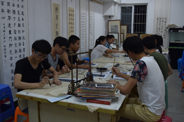 | 为了推进校园文化艺术活动,进一步提高团学助理的综合素质和能力。2015年6月14日晚6点,电信学院团学助理在文化街书法协会进行了书法练习活动。团委副书记兼书法协会会长罗维国作为本次指导老师,由于场地有限,团学助理分成两批练习。