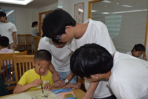 天空所绽放出来的光彩就像是在为你和我的前程铺彩,我不知道我们是否能够踩着这别样的征程走向未来,但是我们用自己的青春,用自己自由的时光为这些孩子们的记忆中画了或多或少的一笔。希望通过本次书法活动的开展,能丰富了孩子们的暑期生活,让孩子们得到一次展示自我的机会,在活动中体验成功的喜悦。 电子信息学院 祝李琴 文/摄 |