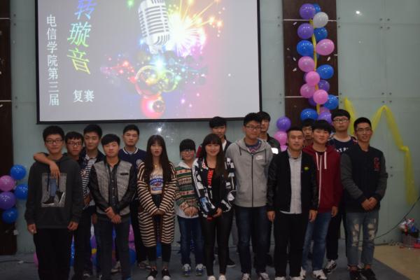 | 2015年11月1日,由电信学院团委学生举办的第三届“吾转璇音”大赛复赛在明德楼105圆满落幕,本届大赛以“你的歌声会闪光”为主题,通过初赛共有26名选手进入本次复赛。本次大赛由电信学院十佳歌手吕鑫、江佳峰,校园十佳歌手朱航宇,音乐沙龙协会章晨担任评委。 本次复赛,由26位参赛选手各自演唱一首歌,评委打分,最后选取前12位选手进入决赛。当第十位选手演唱完毕,主持人会公布前八位选手的分数,以此类推。