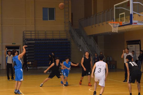 | 为丰富大学生的课余生活,提高大学生的综合素质,增强团队精神和集体凝聚力,展现大学生积极向上的风貌。2015年11月18日晚8点,在顾国华体育馆内举行了电信学院VS海天学院团学社篮球邀请赛。