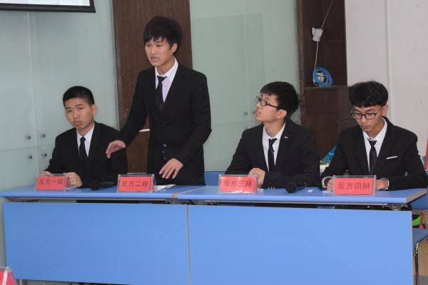 | 2015年12月2号中午12点整,由共青团宁波职业技术学院委员会和宁波职业技术学院公共教学部人文、思政理论教研室主办,宁职院校学生会学习部承办的“抗日战争胜利70周年暨世界反法西斯战争胜利七十周年”电信学院VS海天学院大学生辩论赛季军赛在明德楼105教室拉开帷幕。比赛特邀周碧蓉老师、张国燕老师、吴艳冬老师和杨宏老师担任评委。