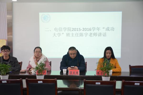| 2015年12月17日下午13点30分,电信学院在敬业楼党员之家举行了“成功大学”开班仪式暨成功大学优秀学员结业典礼。出席本次仪式的有电信学院党总支书记龚友国老师,电信学院团委书记陈宇老师,电信学院辅导员陈洁琼老师。仪式由团委学生会主席团助理谢柏通主持。本届“成功大学”由陈宇老师担任班主任。 ![]() 图为:陈宇老师讲话 仪式伊始,由谢柏通同学宣布本届“成功大学正式开班。”随后,班主任陈宇老师发表讲话。她说:“为什么我们要开设成功大学这门课程,其主要目的是加强学院管理,打造出色学生,同时也希望大家以积极的心态,饱满的热情去学习去面对以后的挑战,共同为电信学院优秀学生贡献一点力量。”接着,由上届“成功大学”优秀学员罗维国同学想在座学员分享他在“成功大学”所学到的经验:“在座的大多是班委、团学助理,在任职期间也许会很辛苦,但是我们不该想着自己有多么辛苦而是哪里做的不好,这也是接下来成功大学所以教给你们的怎样去做一个优秀的人。”罗维国同学说到。分享过后,由电信学院辅导员陈洁琼老师为上届成功大学优秀学员颁发结业证书。 ![]() 图为:陈洁琼老师与优秀学员合照 成功大学是打造优秀学生、优秀团队的平台。在成功大学会学到课堂以外的知识,并在生活中学以致用,在过程中去享受成功大学带给每位学员的点点滴滴。电信学院 祝李琴 文/摄 |