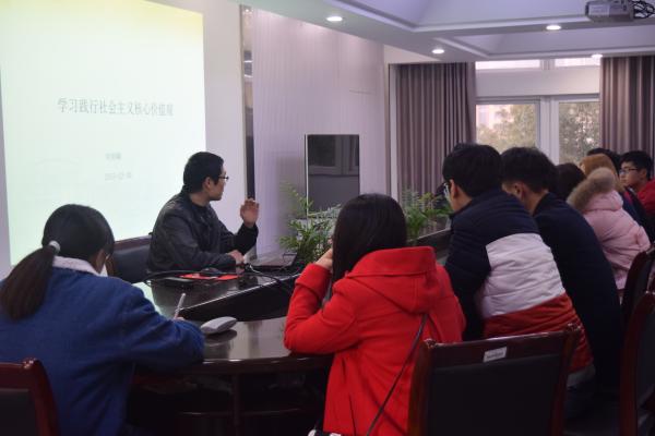 | 为更好的帮助入党积极分子端正入党动机,提高党性修养。2015年12月30日下午4点40分,电信学院在敬业楼党员之家开展了入党积极分子党课培训。本次党课主题是“学习践行社会主义核心价值观”,由电信学院学工部主任刘利峰老师主讲,电信学院入党积极分子参加了此次党课。