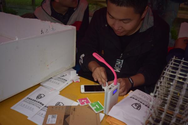 随着手机、数码照相机等电子产品的普及,贴膜行业逐渐盛行起来。在文化街电信学院技能体验区,就发现了一个挂着“祖传贴膜”的摊位,吸引了众多路人好奇的目光。早上8点,工作人员们早早的就来到了展区开始准备。虽然天空不作美,下起了瓢泼大雨,但是也没有阻挡学生们欢度校庆的步伐。此次贴膜10块钱一张,物美价廉,服务周到,如果贴不好我们会重新换一张新的膜,开张不一会就有顾客来贴膜。仔细观察,发现贴膜人员手法娴熟,首先擦干净屏幕,然后撕开贴膜,最后对准手机屏幕往上一贴,一张精美的手机膜就贴成功了。可是,却不知这一张贴膜背后的心酸,工作人员早早的来到工作现场,冒着大雨坐在帐篷下,一个贴完了给另一个贴,忙的停不下来。工作人员的衣服因为大雨湿透了,他们也没有怨言,坚持不懈的为顾客服务着。在摊位上,记者还发现了电信学院同学自己制作的光立方、寻迹小车等。据了解,这些作品曾在省赛中获得不错的名次。