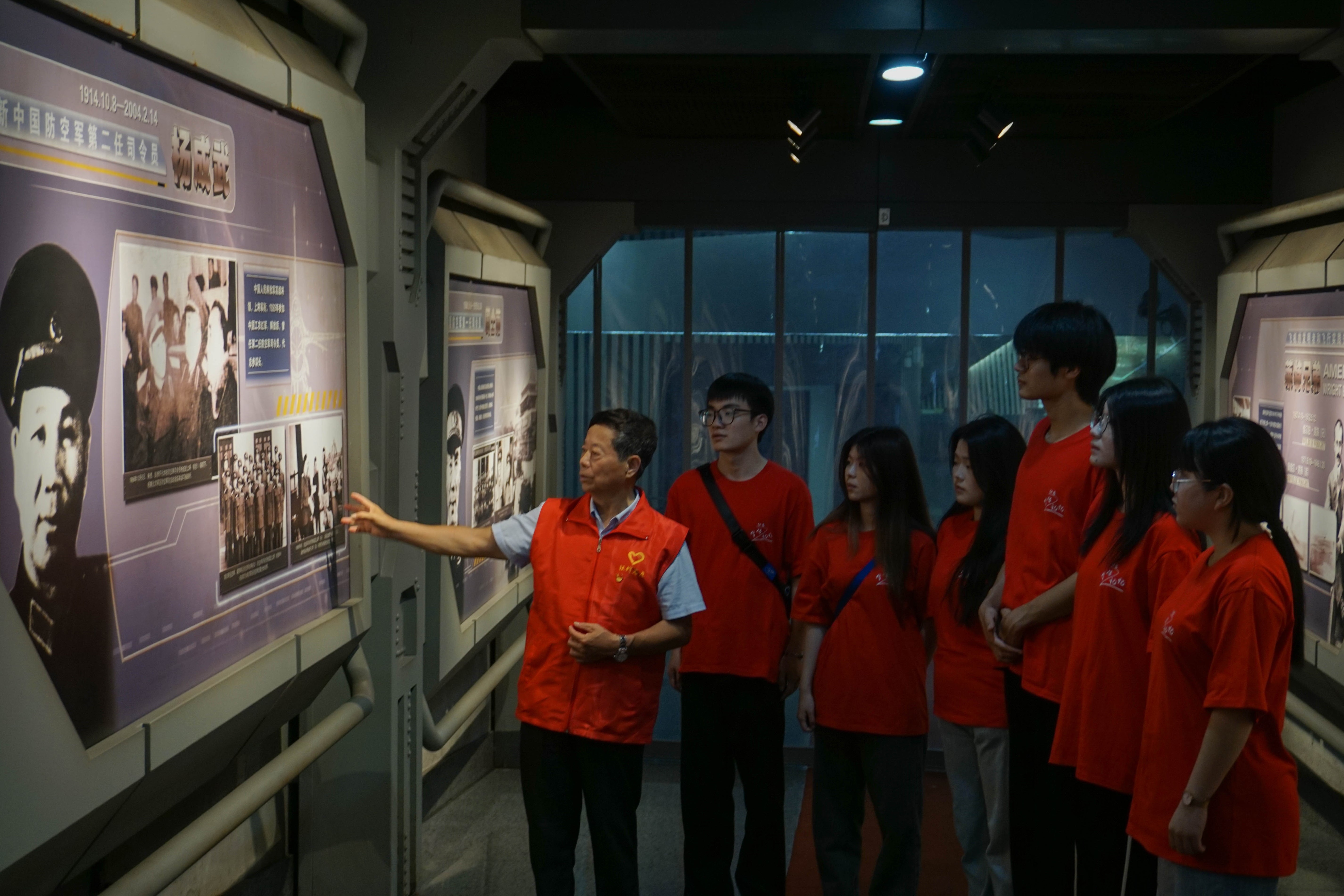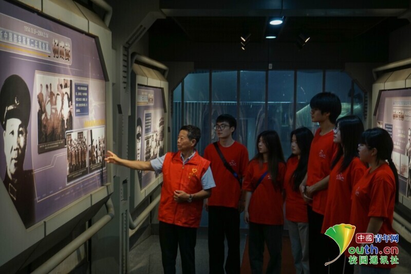 图为红色讲师王春丰在中国防空博览园为实践团成员讲解。中国青年网通讯员 蒋哲 摄
