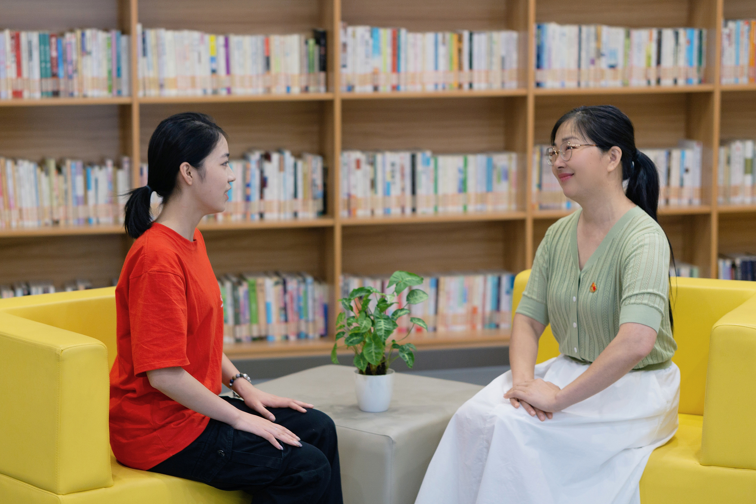 图为实践团成员刘德应访谈党员讲师刘珍。中国青年网通讯员 蒋哲 摄