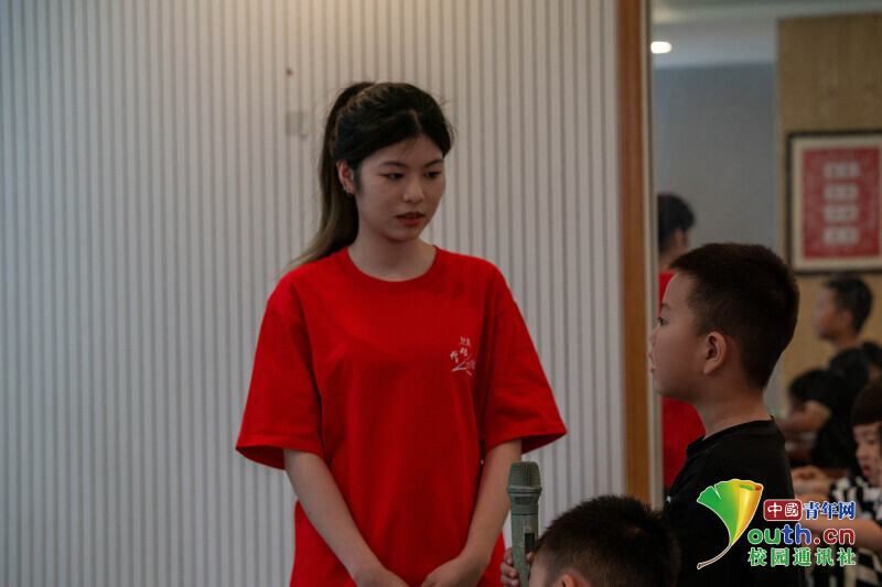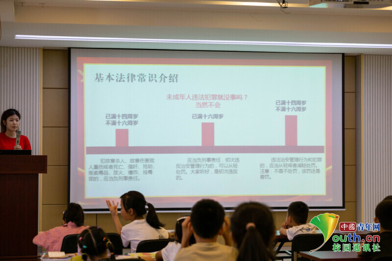 图为实践团成员面向未成年人开展普法宣讲。中国青年网通讯员 蒋哲 摄