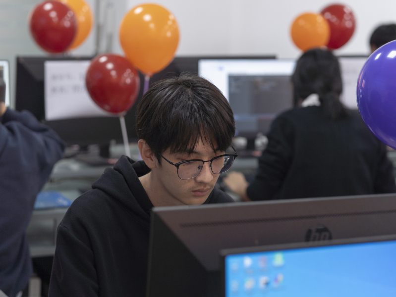 现场比赛采用ACM赛制,以解题数量和提交时间作为评分标准,考验选手的编程功底、算法设计能力。赛场上,选手们专注投入、沉着思考,指尖在键盘上敲击,一行行代码化作破解难题的密钥;每当成功提交正确代码,对应颜色的气球便会及时送达,这些气球既是对解题成果的肯定,也为气氛紧张的赛场增添了一抹灵动色彩。