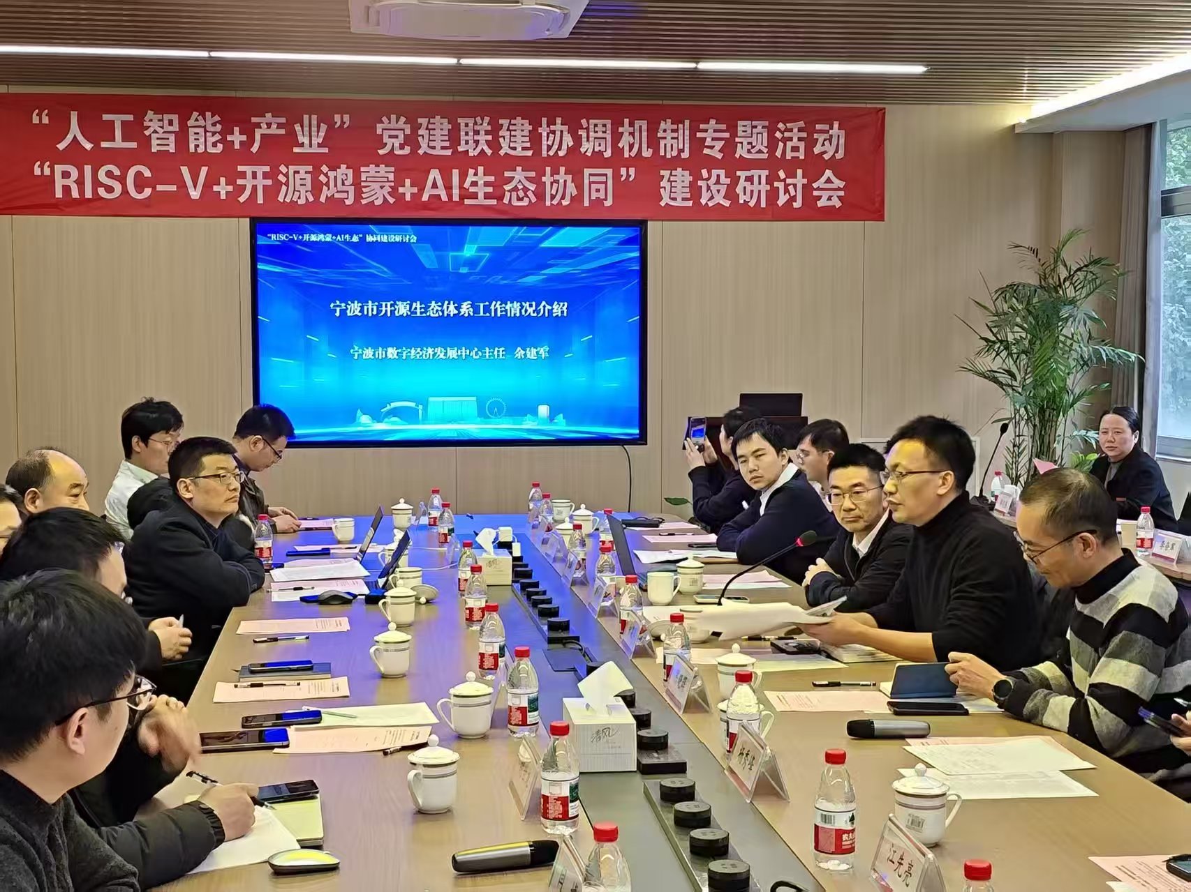 作为“人工智能+产业”党建联建协调机制专题活动,本次会议由宁波经济技术开发区数字经济发展局与宁波职业技术大学人工智能学院联合承办,由中国科学院软件研究所RISC-V如意开源社区、宁波市数字经济发展中心、中教开源创新研究院提供支持。