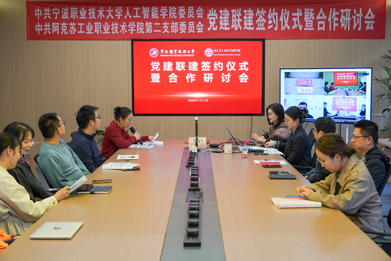 为深入贯彻落实党的二十届四中全会精神,深化东西部高校党建合作,11月11日,人工智能学院与阿克苏工业职业技术学院通过线上线下相结合的形式,举行了党建联建签约仪式暨人工智能专业共建研讨会。阿克苏工业职业技术学院党委委员、第二党支部书记马合木提•瓦依提、第二党支部副书记康宗善,人工智能学院党委相关领导及双方教师代表齐聚云端,共同见证了这一关键时刻。