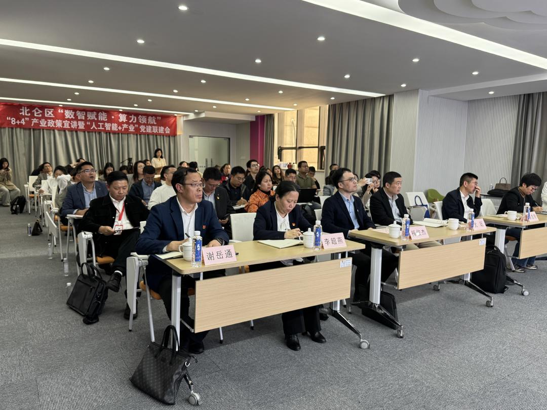 4月16日下午,北仑区“数智赋能·算力领航”8+4产业政策宣讲暨“人工智能+产业”党建联建对接会在大碶街道灵峰工业社区举行。来自市区两级部门、金融机构、高校以及区内50余家龙腾企业、人工智能企业的代表齐聚一堂,共同聆听政策解读,对接发展资源。