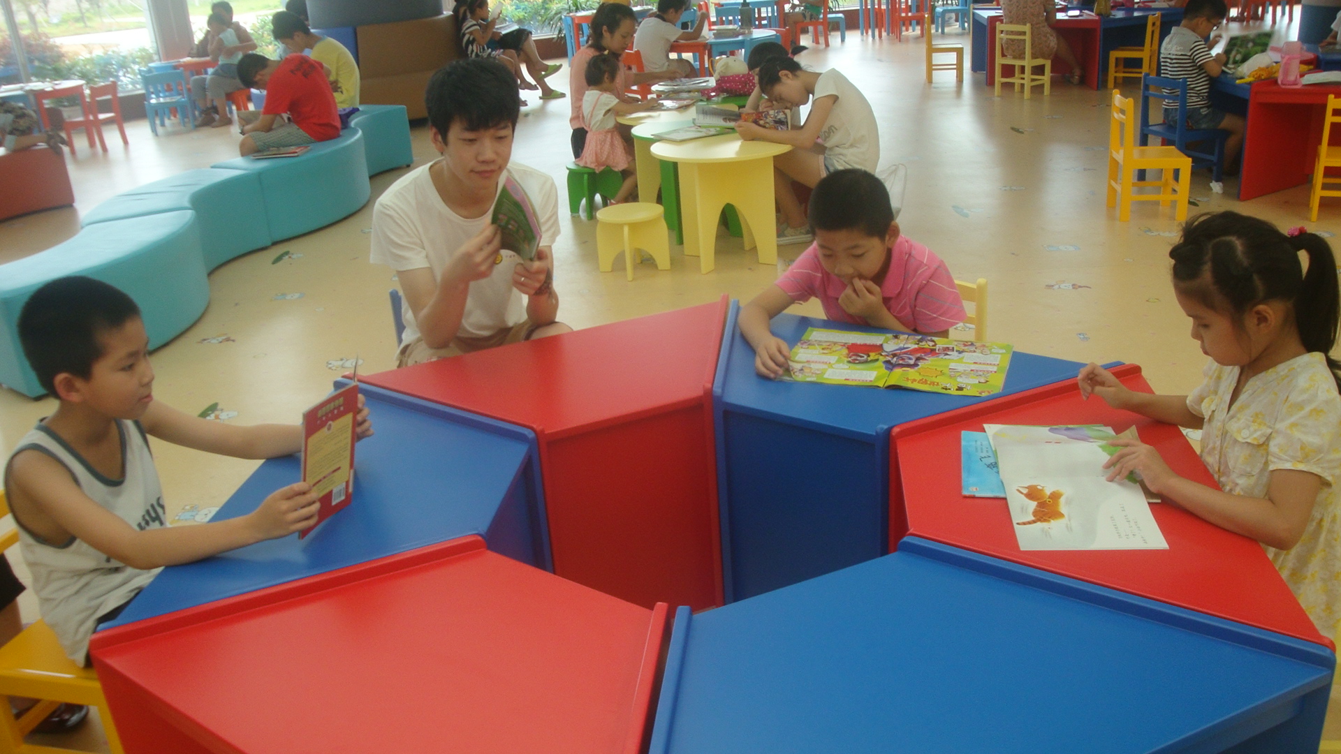 来到图书馆,我系志愿者为防止孩子们走失,每人负责2—3个小朋友,图书馆工作人员热情地欢迎大家的到来、并简单地讲解了注意事项,并且陪伴着大家参观了各阅览区域,向大家介绍了各部室功能及特点,通过讲解、操作、阅览等,使大家图书馆有了新的认知和了解,产生了极大的兴趣,丰富拓宽了孩子们的知识面,随后,孩子们在阅览室里翻看各种书刊,当看到许多大哥哥大姐姐都在专心致志的学习,很受感染。收到了良好的教育效果。