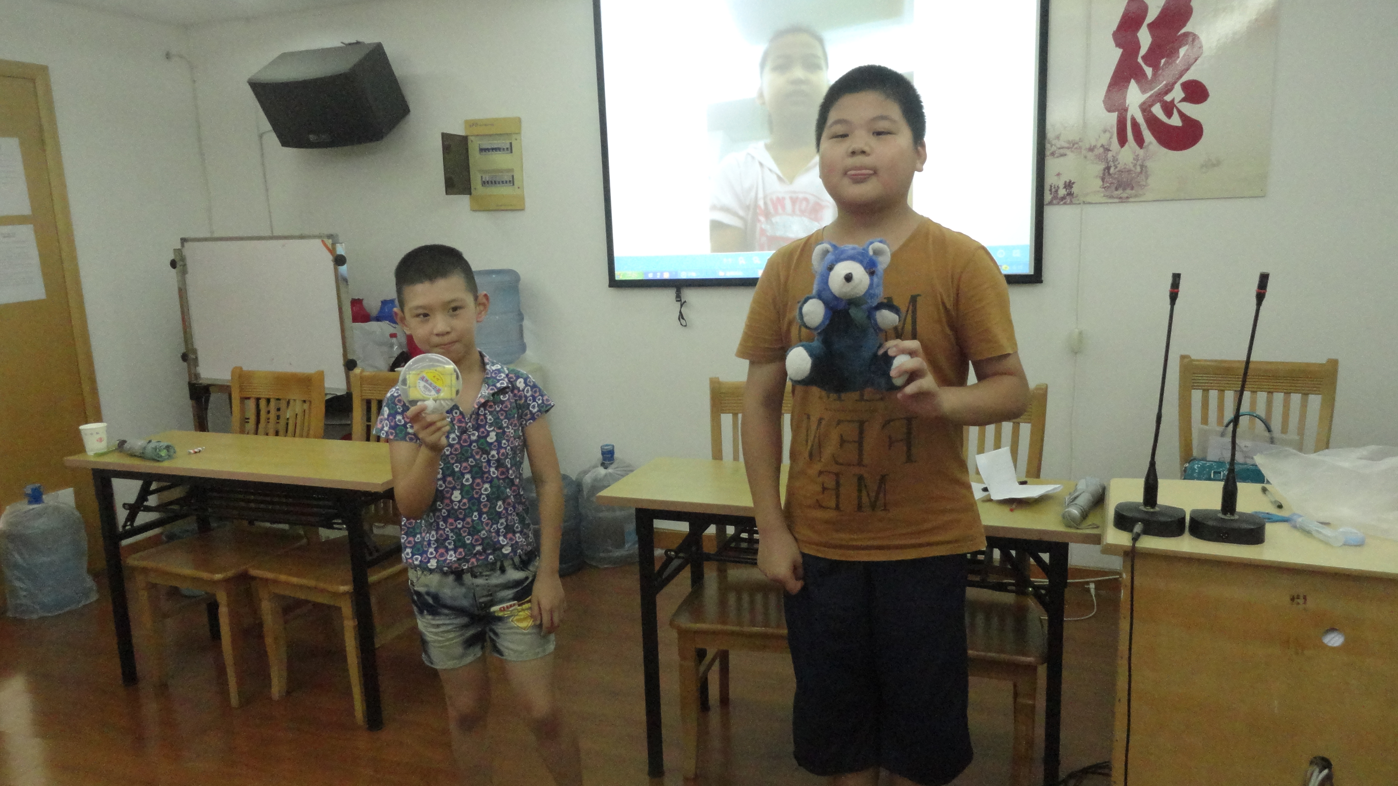 图为:孩子们领取奖品