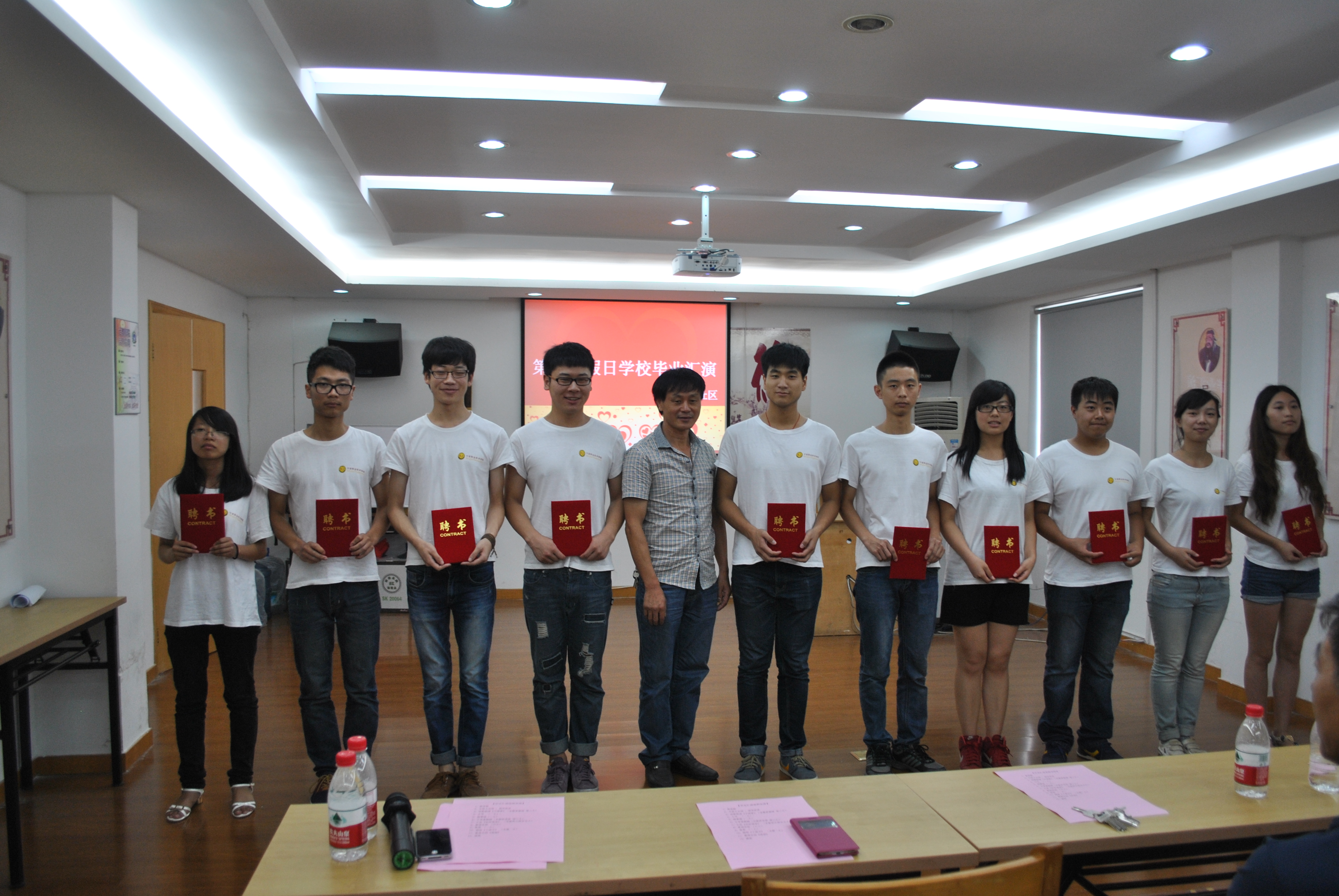 假日学校在一个月的开班过程中,孩子们都呈现出了许多优秀品质,有的多才多艺、有的乐于助人。在此次毕业典礼上,评选出10名荣誉之星和10名优秀学员并为他们颁发了奖品。我系志愿者在一个月的支教活动,得到了黄鹂社区领导的肯定和赞扬,社区领导为我系10名大学生颁发了聘书。