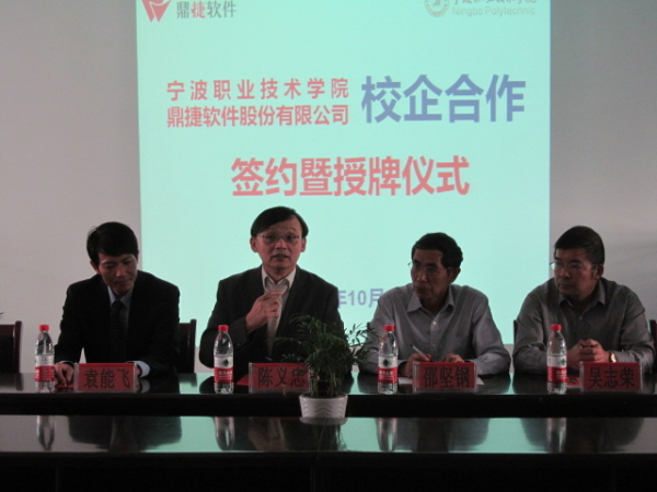 在签约仪式上,鼎捷有限公司副总裁陈义忠先生介绍说,鼎捷软件股份有限公司是亚太地区值得信赖的ERP企业管理软件和服务供应商,是海峡两岸成立较早、用户众多、团队专业、属于中国人的ERP公司。自2001成立以后,成为国内第一家ERP软件发展的公司。因国内软件人才缺失,公司不能大幅度开展市场工作,因此通过此次校企合作的契机,不但可以培养软件人才并且能为我院学生提供珍贵的实习岗位,让学生“毕业即就业”。