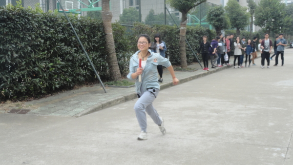 为展现吉尼斯大赛“学习性、竞争性、自主性、创新性、全员性、娱乐性、阳光性”的创办理念。2014年10月29日上午9点,电信学院20位运动员们在露天篮球场进行迎面接力大赛。
